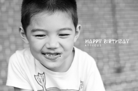 Though the summer heat was melting his double chocolate scoops pretty steadily, Atticus' pace was faster. Evidently there was no time to use a napkin. I really do wonder at what age he'll become conscious of that area around his mouth. For now, the chocolate mustache suits him.